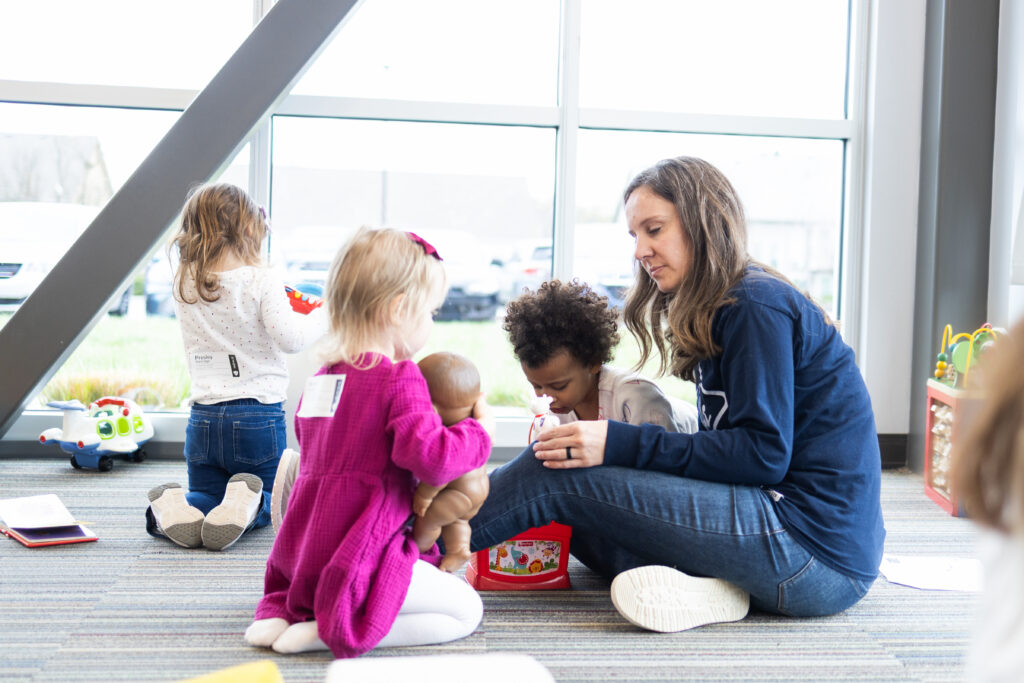 Our walkers get a safe room to move, stack, and discover! We sing simple worship songs, enjoy sensory play, and learn to share with others. Diaper changes and snacks follow parent preferences and posted allergy guidelines.